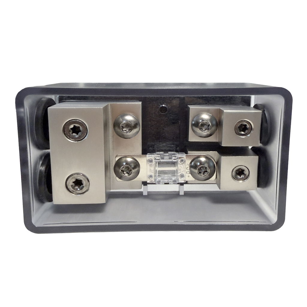 Högkvalitativ och stänksäker säkringshållare för Mini-ANL-säkringar, utvecklad för säker och pålitlig strömfördelning i fordon, marinmiljöer och andra krävande installationer. Konstruktionen är kompakt men robust och passar utmärkt för både ljudsystem och elsystem där driftsäkerhet är avgörande.